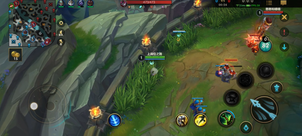对线与打野的节奏掌控是玩好酒鬼的重要环节,在对线期,应多利用一技能进行远程消耗,并借助被动回血保持状态,当使用二技能减伤后,可以寻找机会用三技能撞击对手接强化普攻进行换血,作为打野时,酒鬼的gank能力极强,尤其到达六级后,可以利用肉弹冲击接闪现(E闪)超远距离发起先手,再接大招将敌人炸回,配合队友完成击杀,在团战中,酒鬼的角色可以是开团先锋,利用E闪接大招强行开团,也可以是后手保护者,用大招将突进己方后排的敌人炸开,或用三技能打断敌方关键技能。